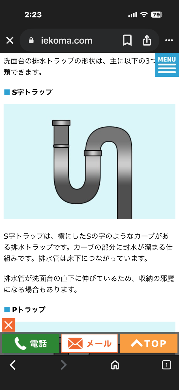 名称がS字トラップと判明!